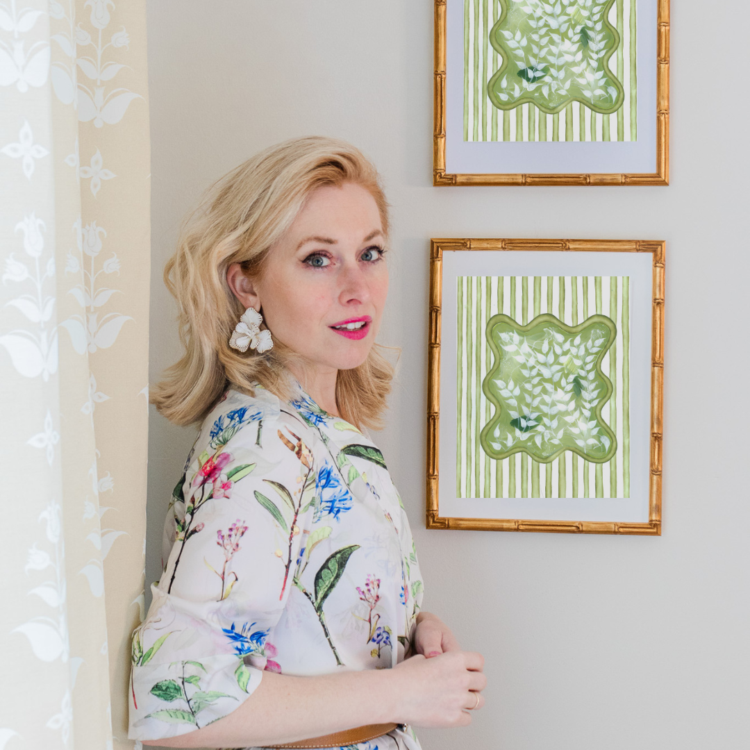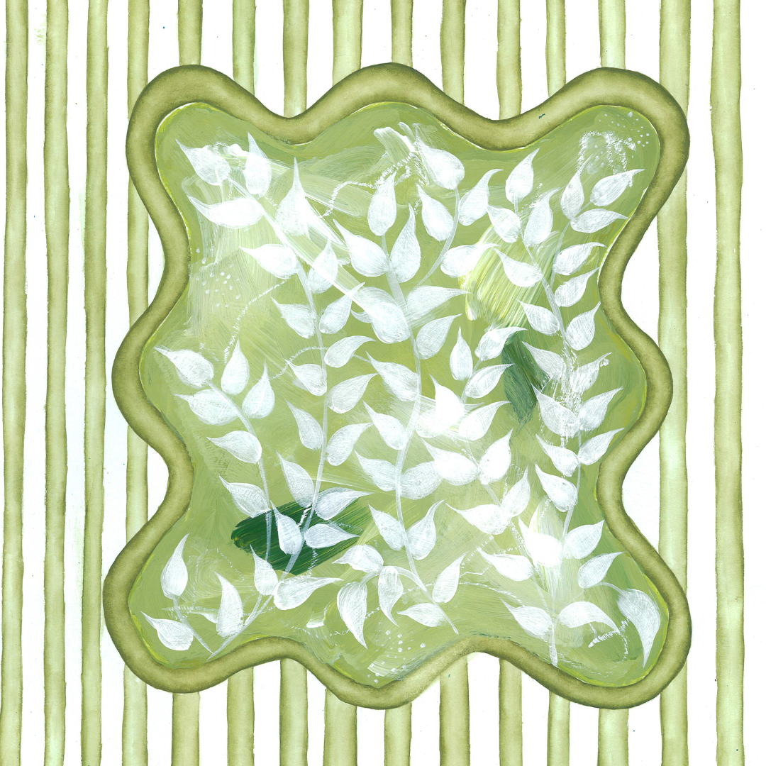 If you love bringing the outside in, the chinoiserie abstract en vert (in green) accompanied by whimsical ticking stripes does just that. This collection was inspired by the grandest of greenhouses across the English countryside, smelling the richness of the soil, and studying the structure of every elegant sprout.